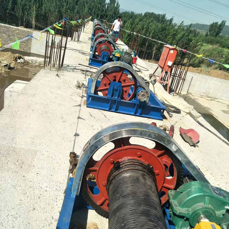 卷扬式启闭机主要是用钢索或钢索滑轮组作吊具与闸门相连接,通过齿轮传动系统使卷扬筒绕、放钢索从而带动升降的机械,也叫做钢丝绳固定式卷扬机。它构造较简单易于制造,维护检修方便,广泛应用于各种类型闸门的启闭。卷扬式启闭机分为单吊点和双吊点两种。双吊点卷扬式启闭机是通过连接轴将两个单吊点的启闭机连接在一起进行同步运行,可做成一边驱动或两边驱动。卷扬式启闭机通常是一扇闸门用一台启闭设备,安装在高出闸门槽顶部的闸墩上。