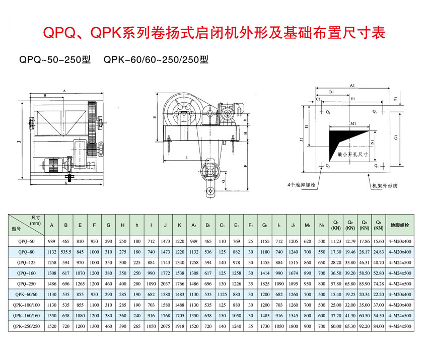 ● QPQ QPK QPG QPT系列产品的启门力或持住力是按照GB/783-65起重机械起重量系列规定优先系列选定。